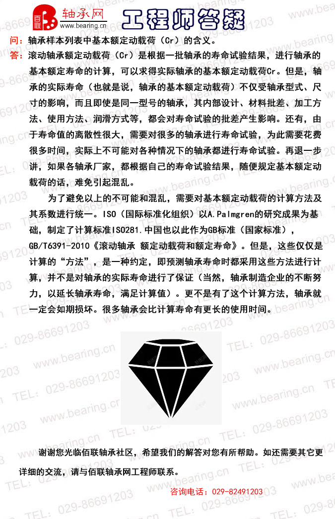 轴承样本列表中基本额定动载荷(Cr)的含义。
