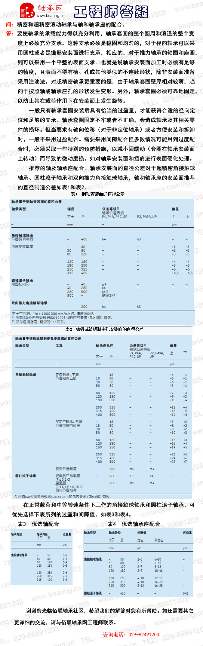 精密和超精密滚动轴承与轴和轴承座的配合。