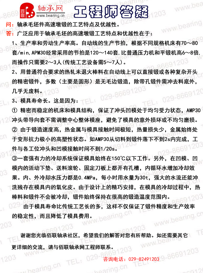 轴承毛坯件高速墩锻的工艺特点及优越性。