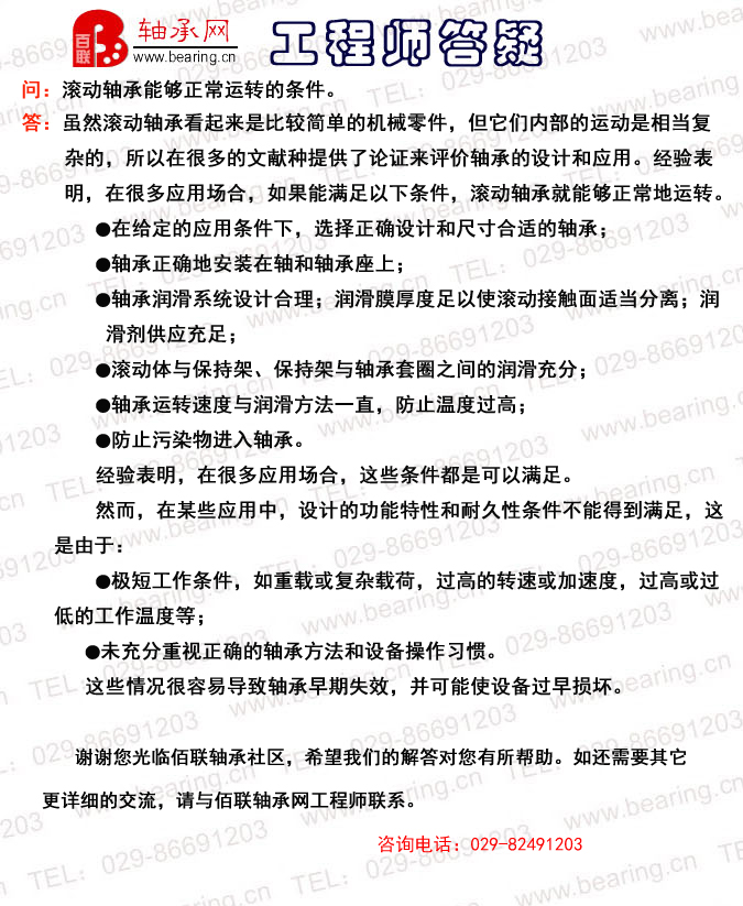 滚动轴承能够正常运转的条件。